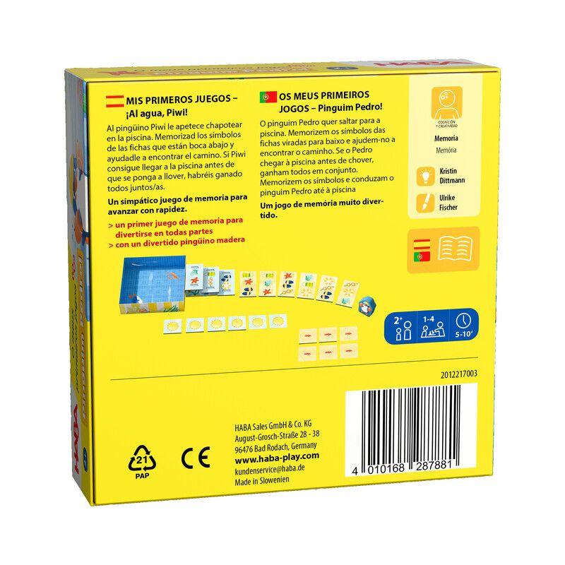 Juego cooperativo de recorrido en el que los jugadores/as deben ayudar a Piwi a avanzar por el camino para llegar a la piscina. Para poder avanzar, los niños/as deberán recordar las imágenes de las casillas. + 2 años