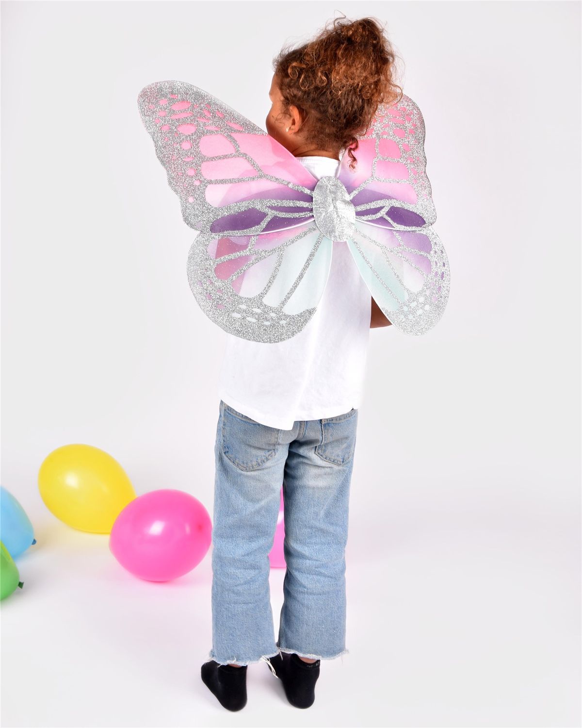 Alas de Mariposa Multicolor con brillo. Tiene tirantes elásticos.
