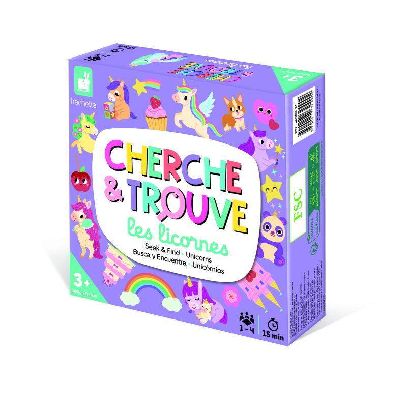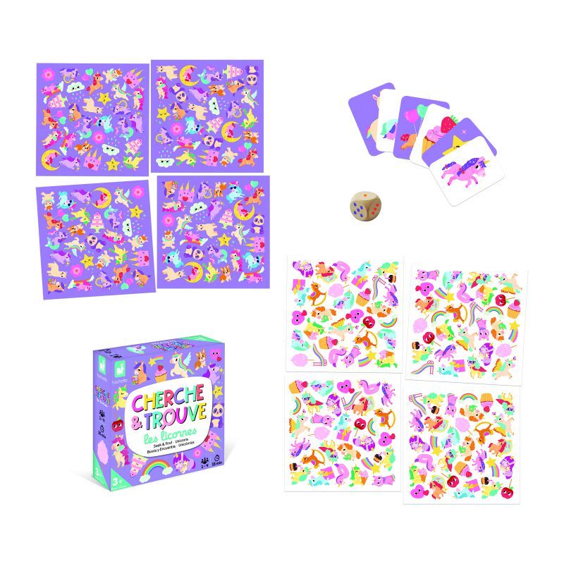 Juego es encontrar entre todos a los unicornios en los tableros para conseguir 10 tarjetas. + 3 años