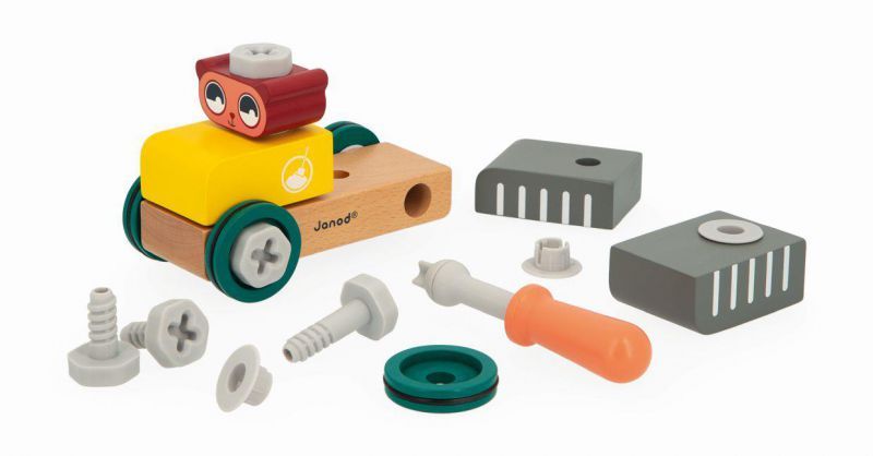 ¡Pequeños amantes del bricolaje principiantes, coged vuestras herramientas! Montad este bonito coche de oso. + 2 años