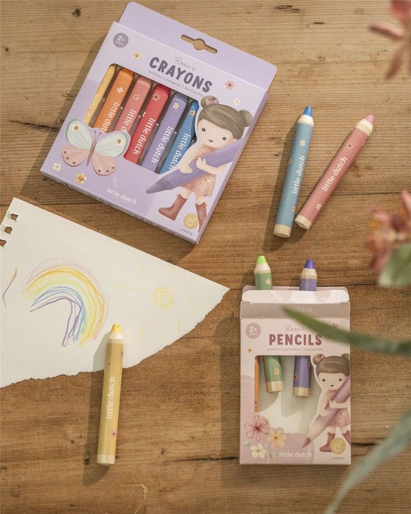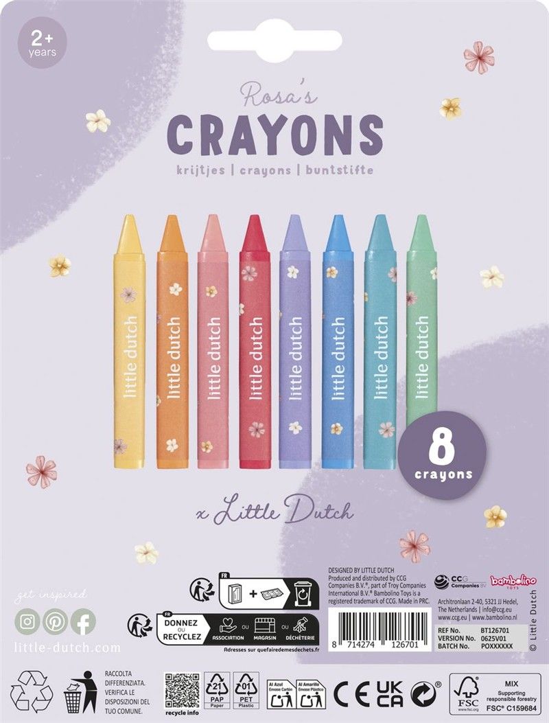 Pack de 8 crayones de cera de la colección de la muñeca Rosa de Little Dutch con forma triangular. + 2 años