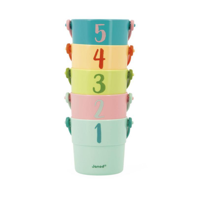 ¡Descubre las crías de animales marinos a través de estos 5 cubos de colores! Se levantan fácilmente, se adaptan a las manos de los más pequeños y harán las delicias de sus pequeños grumetes. Cuando los cubos estén llenos, levántalos para ver el agua saliendo por los distintos agujeros. Juguete para el baño para niños a partir de 10 meses.
