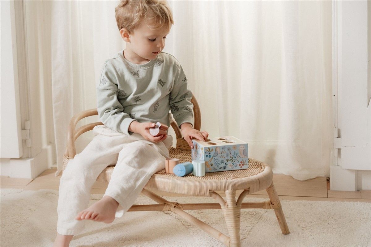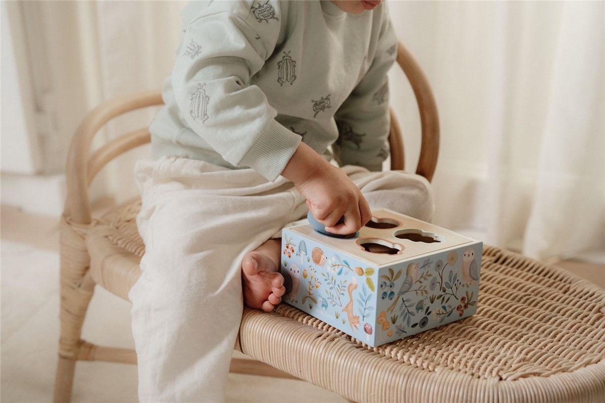 ¡Encuentra la abertura que coincide con la forma de la seta! ¿Y dónde van la bellota y las hojas? Este clasificador de formas de madera es un juego de clasificación creativo que enseña a tu pequeño a reconocer y combinar formas y colores, y afina la coordinación mano-ojo. +18 meses