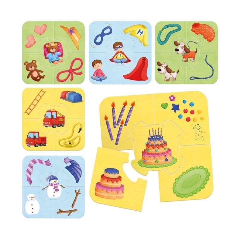 Qué es lo que hace a un muñeco de nieve tan simpático? ¿Y a una tarta tan apetitosa? Uno de los juegos para niños de 2 años a 4 de asociaciones para descubrir los elementos que caracterizan las cosas., Desarrollaran la visión espacial, aprenderán a observar, analizar y clasificar cómo se fabrican los objetos