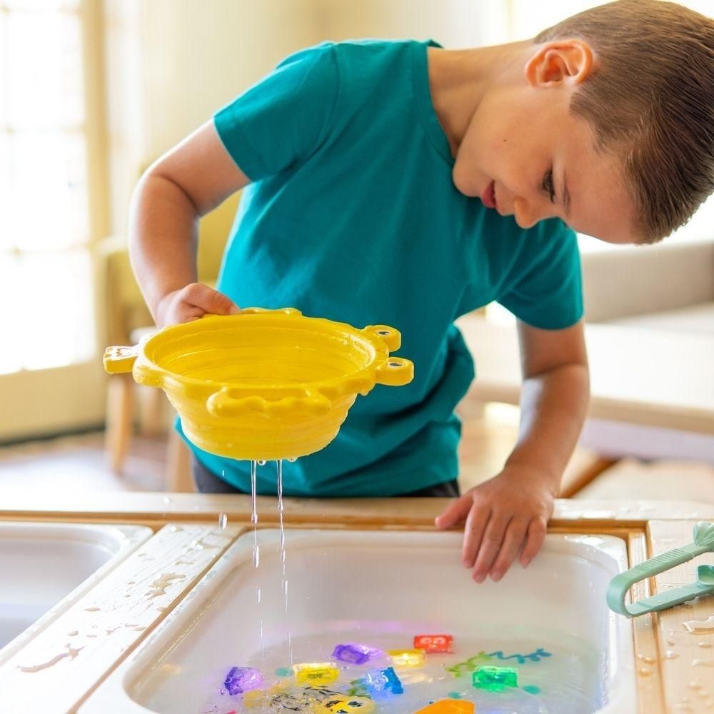 El set Pick-Up Pals de Glo Pals reúne 3 herramientas sensoriales premiadas para recoger, colar y tamizar, pensadas para manos pequeñas y perfectas en mesas sensoriales, frascos de exploración o juegos con agua.
