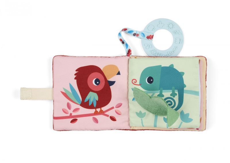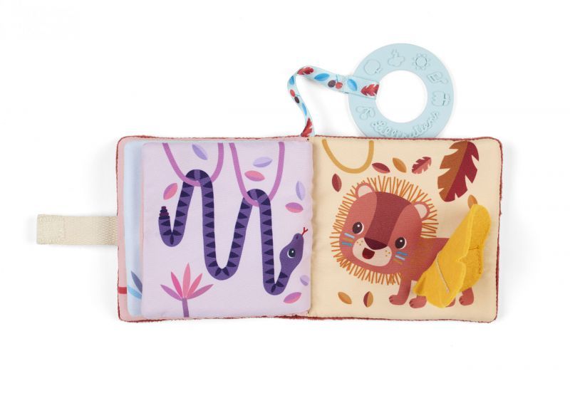 ¡Un suave librito de imágenes con Jack el león para despertar al bebé con dulzura! Sus páginas coloridas invitan a descubrir y explorar con el tacto. Práctico, incluye un anillo de dentición para calmar las encías y acompañar al bebé en todo momento del día. + 6 meses