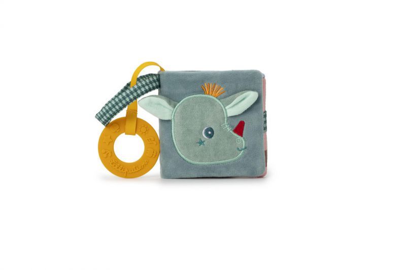 Un libro de imágenes interactivo muy suave, lleno de sorpresas para los ojos y los oídos, que alivia las boquitas en las que ya están saliendo los dientes.