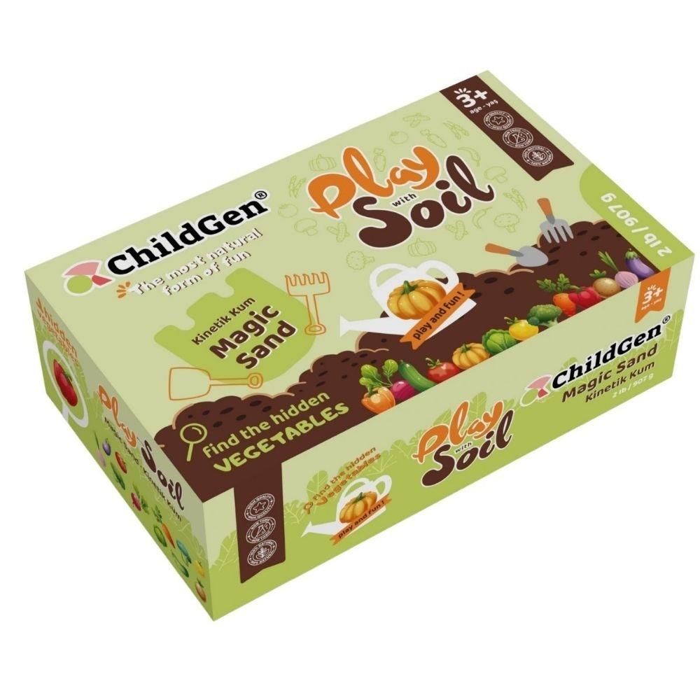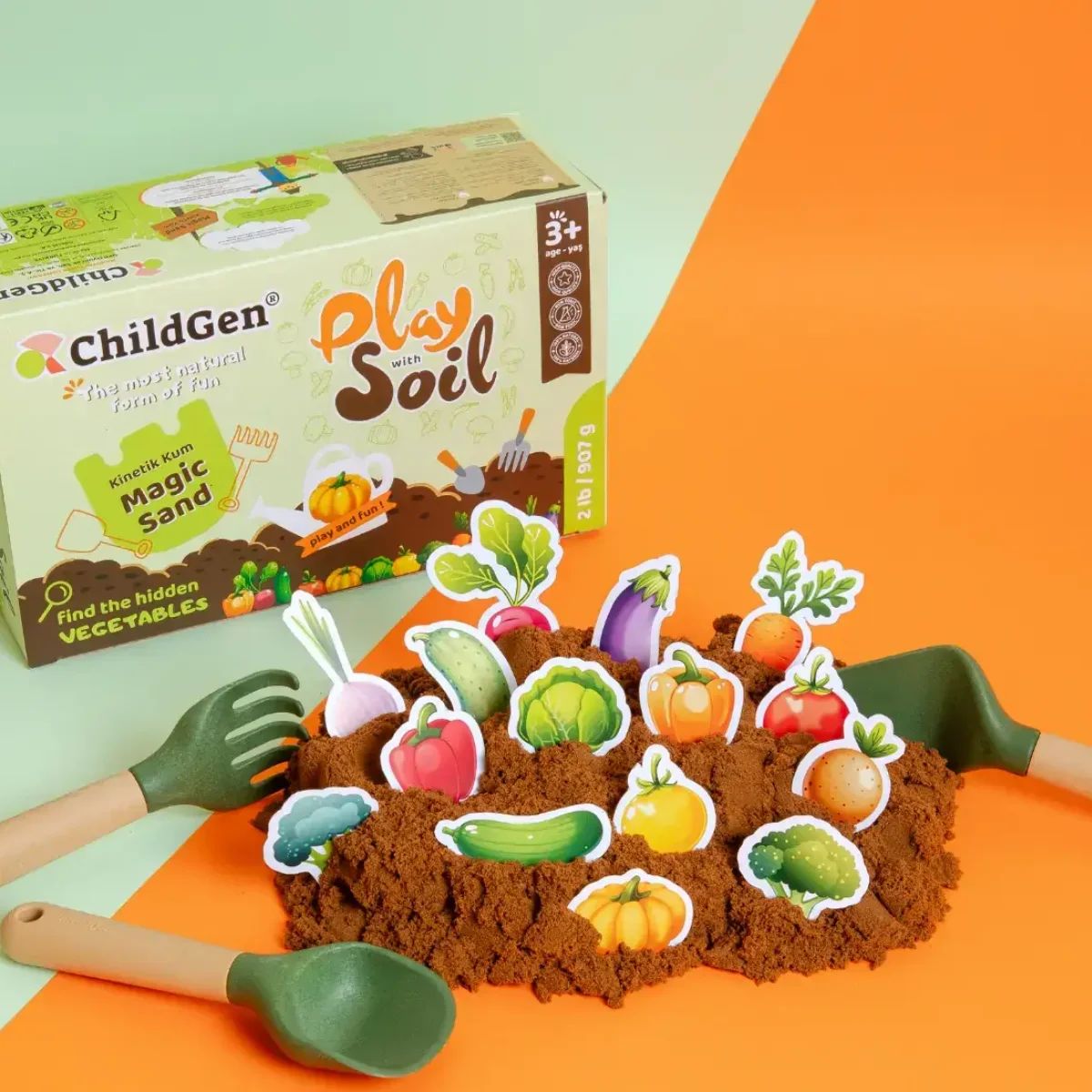 El Soil Set de ChildGen es un set sensorial compuesto por arena cinética natural color tierra y 13 figuras de frutas y verduras en cartón resistente. Pensado para crear tu propio huerto y jugar a sembrar, cosechar y explorar con las manos, este juego simbólico estimula la motricidad fina, los sentidos táctiles y la imaginación de forma segura y tranquila. Su textura suave, su agradable aroma a cítricos y sus propiedades antibacterianas lo convierten en una experiencia completa tanto para el desarrollo como para la relajación. Deja que fluya entre los dedos y observa su caída como si fuera lava: es perfecta para momentos de calma tanto para peques como para adultos. +3 años