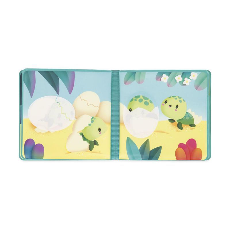 ¡Nos vamos de aventuras! Descubre las tortugas marinas a través de este libro mágico compuesto por 8 páginas. ¡Mantén los ojos bien abiertos, la vida marina está llena de sorpresas! A los animales les encanta esconderse. Sumerge el libro en el agua para que aparezcan. En cuanto el libro se seque, estos pequeños traviesos encontrarán inmediatamente su escondite. Juguete para el baño para niños a partir de 10 meses.
