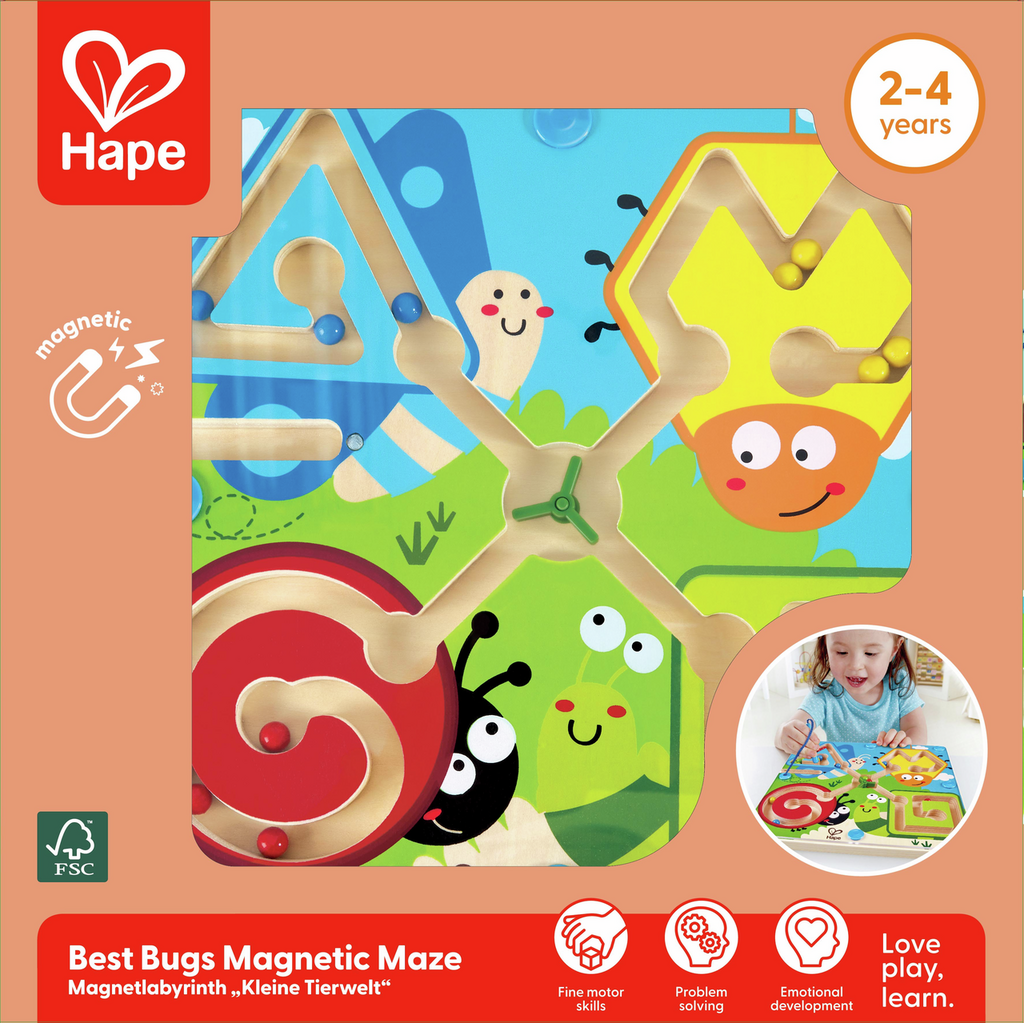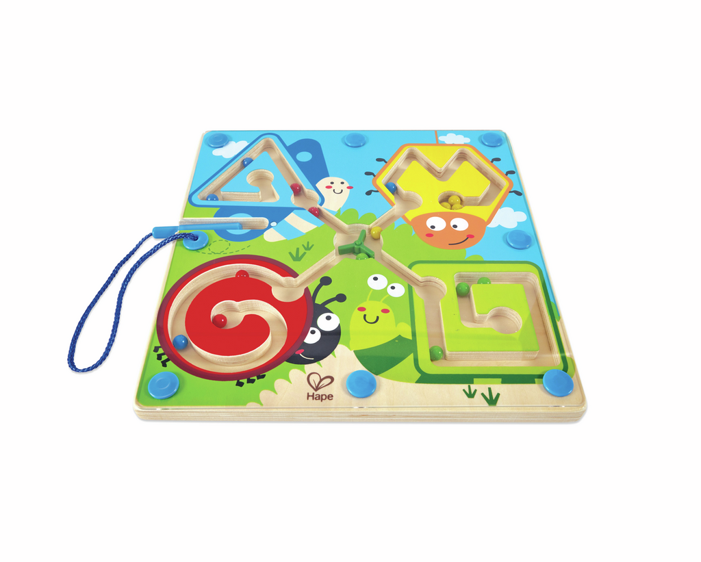 ¡Los insectos tienen hambre! ¡Dales de comer! El lápiz magnético, hace que las bolas avancen a través de este laberinto portátil. ¡Elige por dónde quieres comenzar el recorrido!