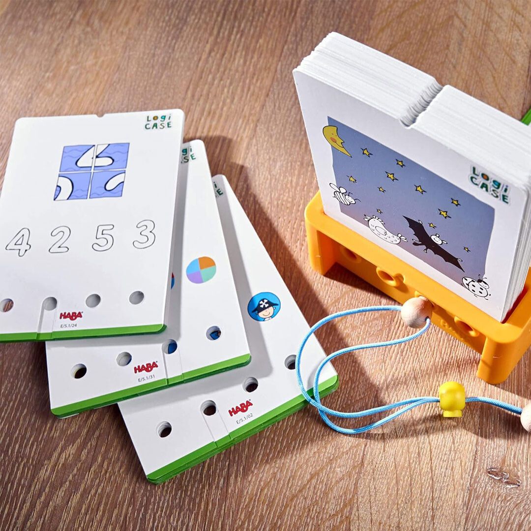PALABRAS CLAVE: juego de lógica, juego infantil de lógica, juego educativo, juego de acertijos, juego infantil de acertijos, juego de adivinanzas, juego infantil de adivinanzas, juego de lógica a partir de 5 años, juego de viaje, juego pequeño formato, juego HABA, juego de tarjetas, fichas educativas, Vuelta al cole
