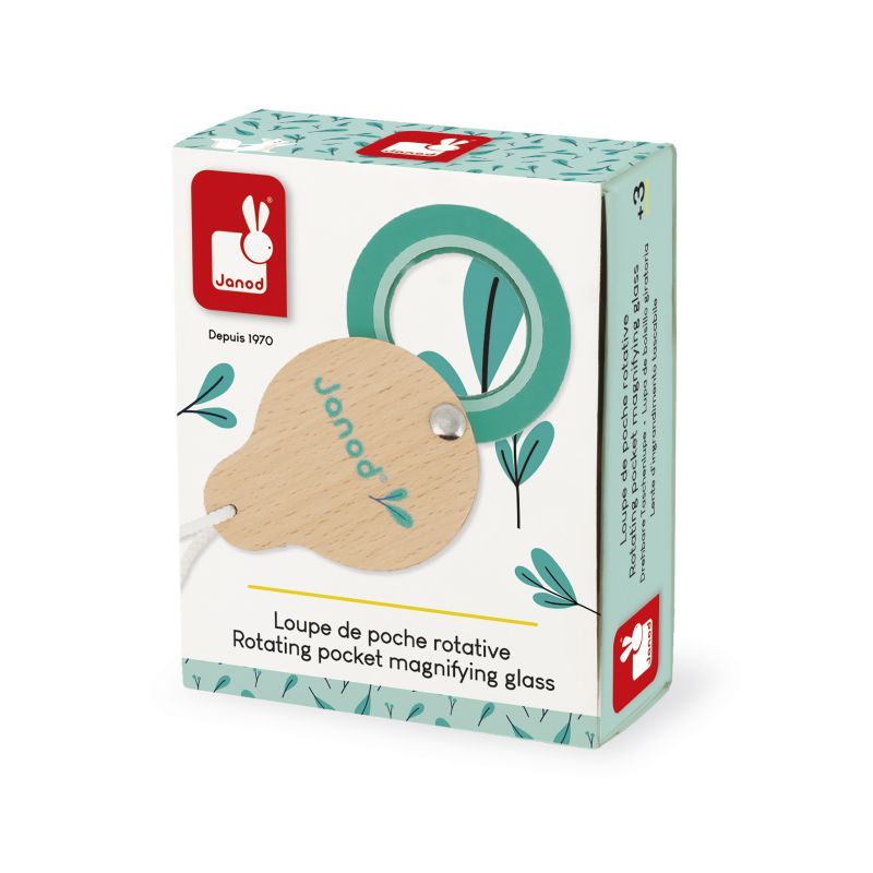¡Una lupa de bolsillo para ver los descubrimientos a tamaño real! Esta lupa de 3 aumentos acompañará a los exploradores principiantes en todas sus aventuras. Compacta y práctica, se pliega en su estuche de madera para protegerla una vez finalizada la misión de observación. ¡Gracias a su cordón, se puede enganchar fácilmente en la muñeca o en el bolso para tenerla siempre a mano! Perfecta para observar de cerca todas las pequeñas criaturas y curiosidades del jardín. Juguete ideal para animar a los niños a descubrir el entorno. Juguete de madera FSCTM para niños a partir de 3 años.