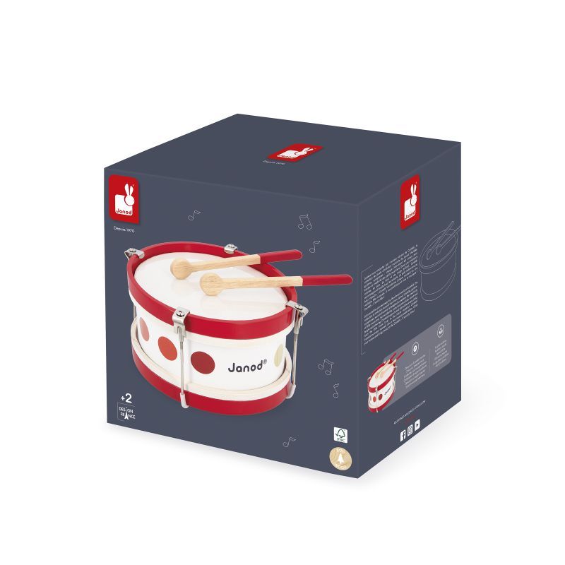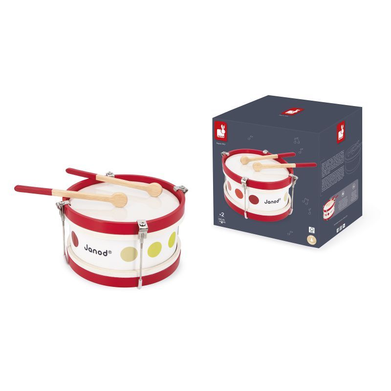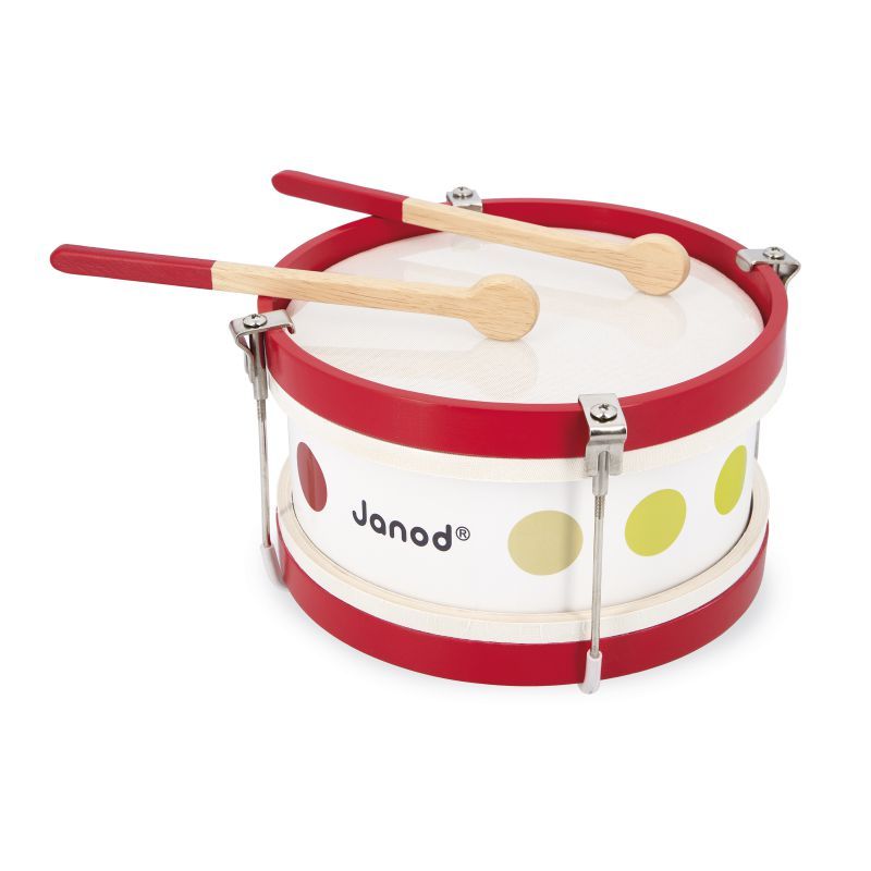 Con su diseño de lunares de colores, este bonito tambor de madera permitirá a los pequeños imitar a los mayores. + 2 años