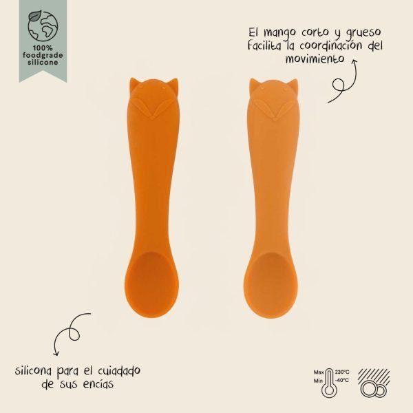Set de 2 cucharas de silicona Mr. Fox Trixie, suaves y seguras para los primeros bocados. + 4 meses