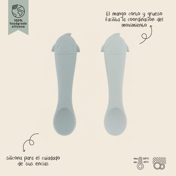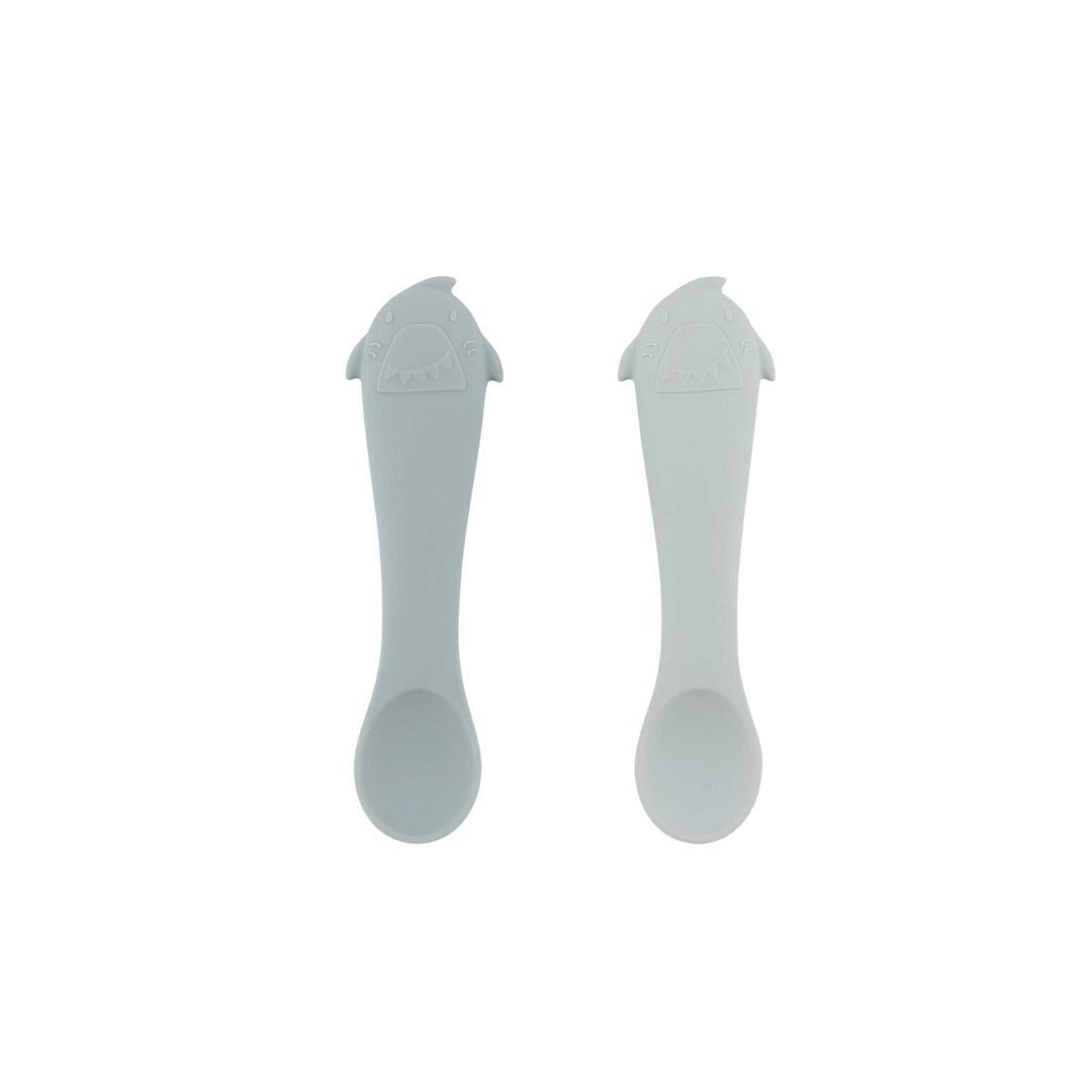 Set de 2 cucharas de silicona Mr. Shark Trixie, suaves y seguras para los primeros bocados. + 4 meses