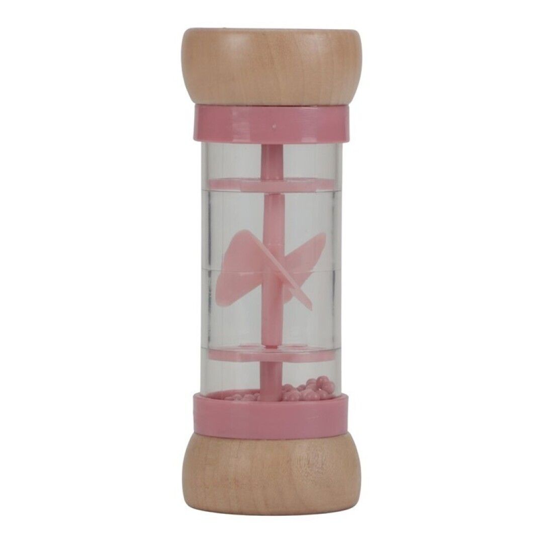 ¡Agítalo y haz sonar! Gira el sonajero de lluvia y escucha el sonido relajante de las bolas que se mueven de un lado a otro del generador de lluvia. Estimula el desarrollo sensorial y el talento musical de tu bebé. Las bolas caen a través de pequeñas aberturas en el tubo y hacen girar la hélice, lo que produce un sonido agradable. El sonajero de lluvia está diseñado para manos pequeñas y es cómodo de sostener. La parte superior e inferior de madera están decoradas con una ilustración de una flor y una mariposa de la colección Fairy Garden.
