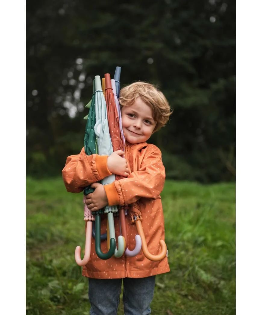 ¡Disfruta de la lluvia con nuestros paraguas alegres de animales hechos de material reciclado! ¡Un día gris cambia instantáneo de color con estos amantes de animales alegres a tu lado! Mantente seco bajo el paraguas de tu animal favorito. Los paraguas están hechos de poliéster 100% reciclado. El sistema deslizante para abrir y cerrar el paraguas está especialmente diseñado para las manos de los niños, de modo que los niños puedan usar el paraguas de manera segura y suave. El paraguas tiene una armadura de aluminio fuerte, de alta calidad y muy ligero. Cuando el sol vuelva a brillar, ¡puedes recoger el paraguas con la cola del animal!, 100% poliester reciclado, solo limpieza de manchas.
