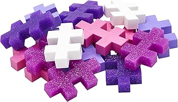 Piezas de colores pastel con purpurina. El juego libre es mágico para el aprendizaje y desarrollo, ya que ponen en práctica la imaginación y la capacidad de pensar cómo encajan las cosas.