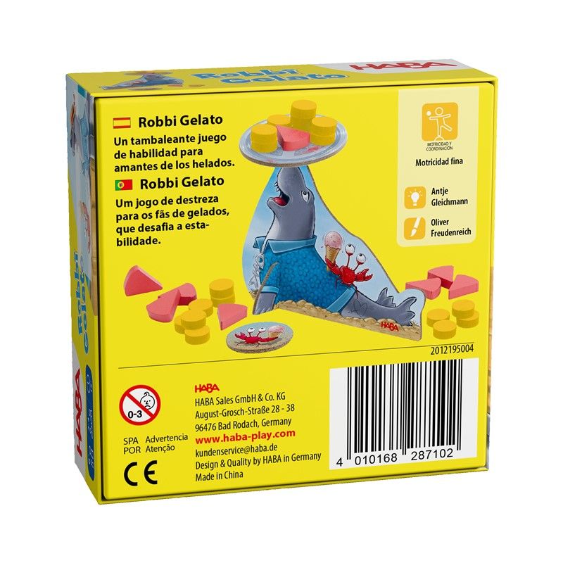 Juego de habilidad para llegar a cualquier parte. Robbi es el heladero más ábil de toda la playa y es capaz de llevar en su bandeja un montón de helados. Quien consiga colocar todos sus helados sobre la bandeja de Robbi, sin que caigan, gana.