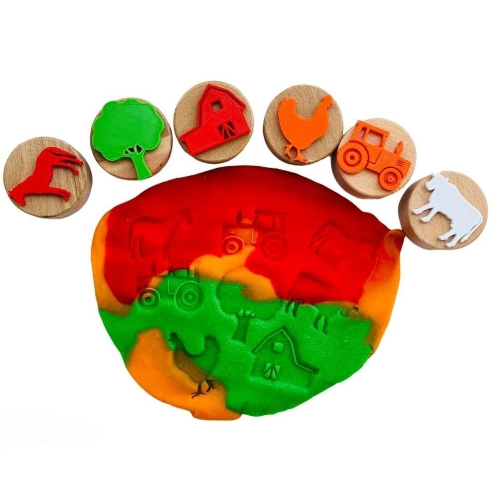 Los animales de la granja cobran vida con este encantador set de 6 sellos de madera natural. Vacas, ovejas, gallinas y otros personajes del campo acompañan a los peques en su juego libre con plastilina, arena o pintura. Con un diseño grabado en 3D y tamaño ergonómico (5 cm de diámetro y 2,5 cm de alto), están pensados para manos pequeñas. Fáciles de sujetar y estampar, favorecen la autonomía y el desarrollo de la motricidad fina mientras se divierten creando. + 3 años