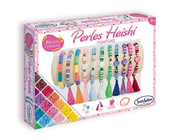 Más de 1.400 cuentas finas en forma de disco en 18 colores para crear más de 10 pulseras decoradas con bonitas cuentas y 10 pompones.