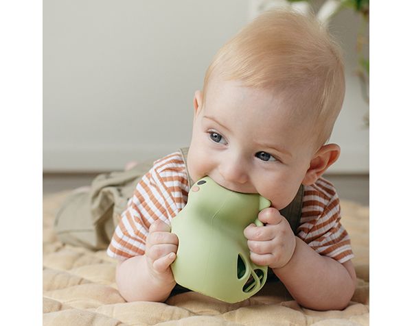 Este adorable sonajero de silicona con forma de dinosaurio se convertirá en el favorito instantáneo de tu bebé.