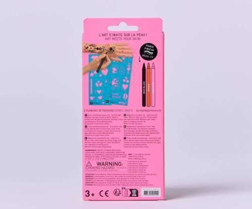 CONTIENE TRES ROTULADORES (NEGRO-BLANCO-LILA) + 35 PLANTILLAS PARA TATUARSE
