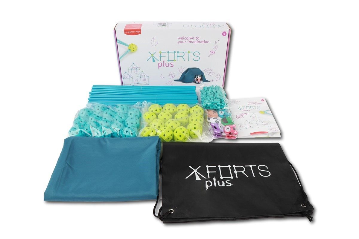 Con el XForts Set 85 pcs. los niños pueden dar rienda suelta a su imaginación y construir su propia cabaña, refugio o cueva. También, castillos, tipis, o iglús. No hay límites. Además se incluye una gran tela cielo de día.
